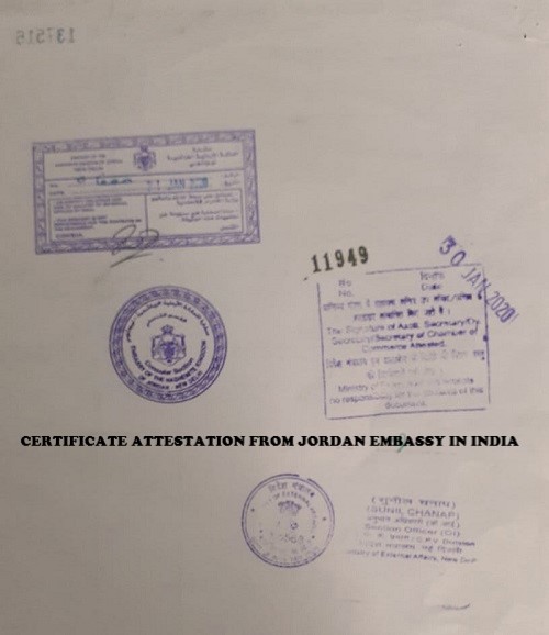The Commercial Document Attestation from Jordan Embassy in India will be done after the Attestation from Chambers of Commerce and the Attestation from Ministry of External Affairs / MEA, Govt. of India.