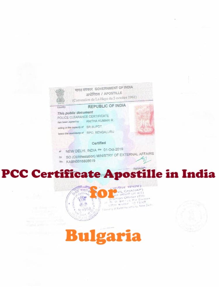 On the other hand, if the Police Clearance Certificate (PCC) or non Criminal Record Certificate has been issued from Local Police State then the PCC Apostille for Bulgaria will be done from Ministry of External Affairs (MEA), Govt. of India after the Attestation of State Level Attestation Department like Regional Attestation Center (RAC), General Administrative Department (GAD), Home Department, Secretariat, Commissioner etc. and the Attestation from Notary Public.