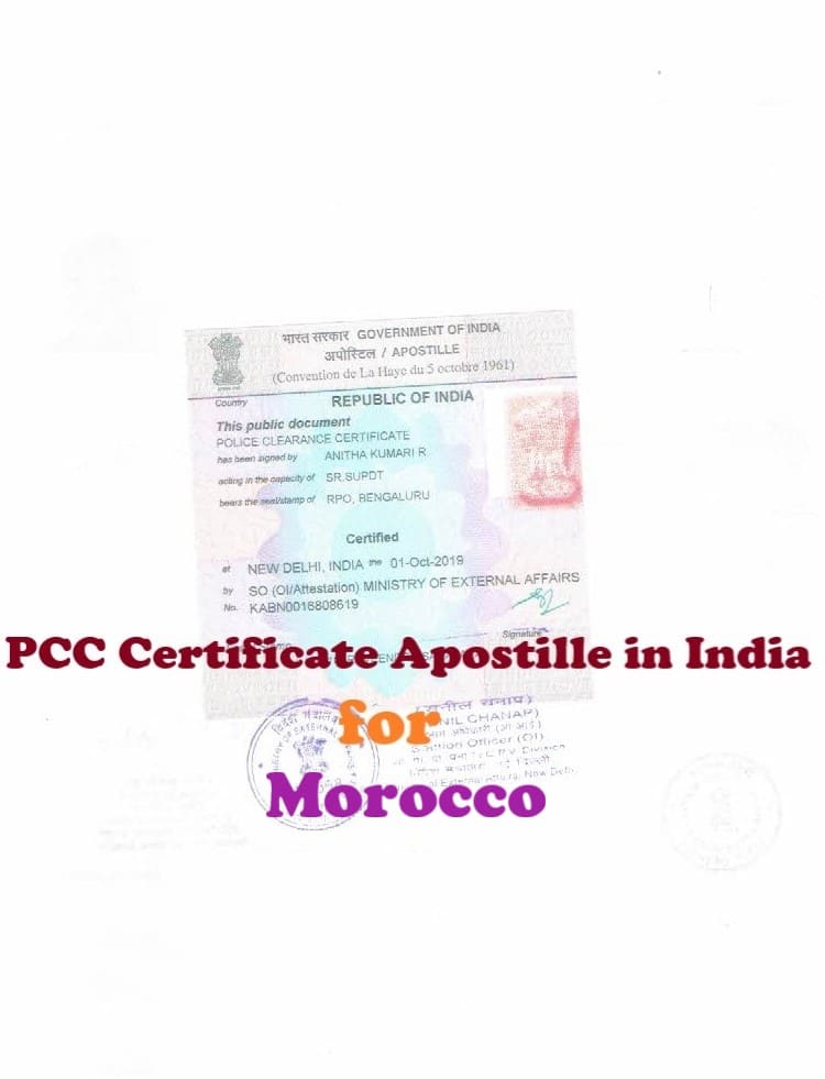 Morocco is a Hague Conventional Country (HCC) as such when an Indian Citizen is going Morocco for Study or Job purpose then they need to Apostille their Police Clearance Certificate / PCC or No-Criminal Record Certificate from Ministry of External Affairs / MEA, Govt. of India in Delhi, Mumbai, Chennai, Kolkata, Guwahati, Hyderabad, Chandigarh, India. The detail process of PCC Certificate Apostille Attestation for Morocco is mentioned hereunder.